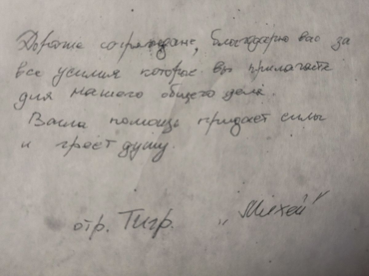 В последней декаде января усилились морозы и стали поступать заявки об оказании помощи военнослужащим. Волонтеры участка №5 сразу включились в работу. Очередную партию гуманитарного груза для бойцов специальной военной операции отправили через волонтеров сообщества «Пчелки- Ладушки»., в Запорожское направление. Выгрузка была в опасной военной зоне, где не было возможности сделать фото фиксацию. Поэтому передали записку из отряда «Тигр» - позывной « Михей», со словами « Ваша помощь придает силы и греет душу».