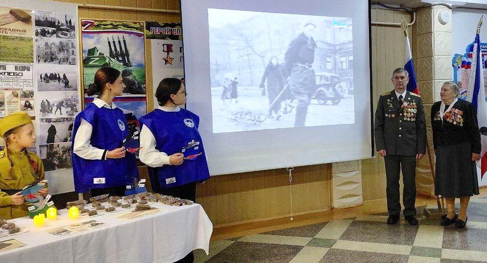 Сергей Викторович прочёл стихотворение, рассказывающее о мужестве и стойкости ленинградцев. Его слова тронули каждого, напомнив о том, каким подвигом была жизнь в блокадном Ленинграде. Екатерина Максимовна рассказала о символах блокады Ленинграда.