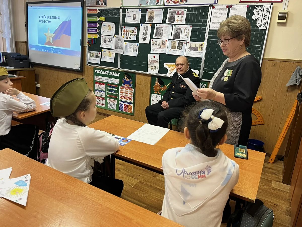 25.02.2026 В МБОУ г.Керчи РК "Школа № 2» члены участка №5 Шишкова Е.М. и Васенин Н.А. провели урок мужества для учащихся 4 классов, посвященный Дню защитника Отечества. Шишкова Е.М. провела презентацию «Путь через три войны», о герое Панове Федоре Семеновиче (02.12.1892 -21.02.1989гг) Федор Семенович участвовал в первой мировой, гражданской войне, Великой Отечественной. Награждался орденом Ленина, Красного Знамени, Красной Звезды и многими другими боевыми и юбилейными медалями.