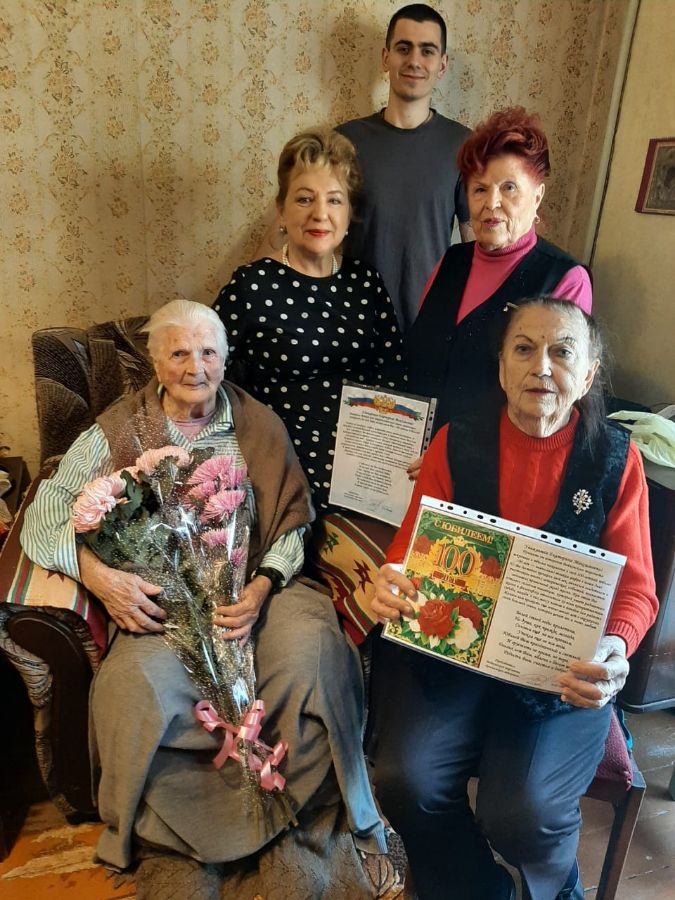 14 ноября участнику Великой Отечественной войны, ветерану трудового фронта, очень скромному человеку, Гришаковой Екатерине Максимовне исполнилось 100 лет. Поздравить юбиляра пришли председатель Войковского территориального совета ветеранов Товкач Галина Никитовна, активист ветеранского движения Гупская Наталия Семёновна, депутат керченского городского совета Дерюгина Наталья Владимировна. На встрече присутствовали внучка Екатерины Максимовны и два правнука. От Войковского терсовета ветеранов имениннице были вручены два поздравления и букет цветов. Прожить сто лет, быть свидетелем разных событий, происходящих в стране, поистине это замечательный подарок судьбы. Желаем Екатерине Максимовне ещё долгих лет жизни, бодрости, активности, хорошего позитивного настроения, тепла и любви близких и родных людей.
