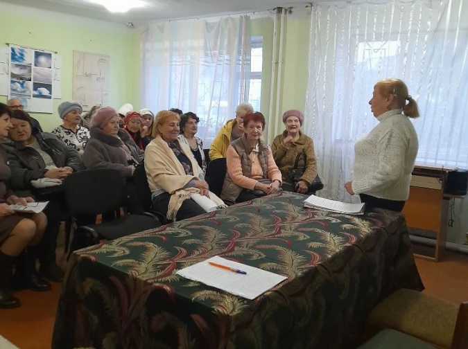 С отчетным докладом за период 2023 - 2025 год. Выступила председатель Совета Ткаченко Надежда Андреевна. Она отметила, что в Совете ветеранов завода числится 860 человек, куда входят все категории пенсионеров.
