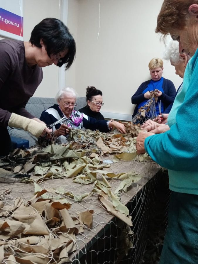 Участники мероприятия первичной организации территориального участка №5 Центрального совета собрались не только послушать рассказ о военной прозе. До прихода библиотекаря ЦГБ им. В. Г. Белинского они уже три дня ремонтировали маскировочные сети, доставленные из зоны СВО. Волонтёры своим неутомимым трудом оказывают неоценимую помощь нашим бойцам, так как маскировочные сети жизненно необходимы для скрытия полевых позиций, техники, разведчиков и снайперов. Волонтёры, посетители Центра общения старшего поколения, рассказали о своей помощи фронту.