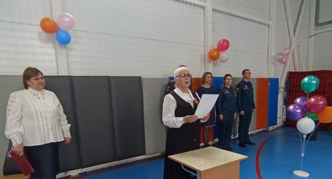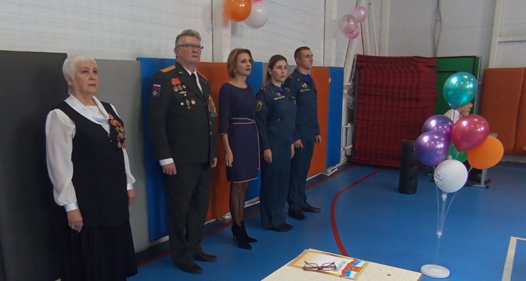Директор школы, Артамонов Александр Александрович, Коваль Вера Фёдоровна и сотрудники МЧС поздравили учеников со вступлением в КАДЕТЫ,