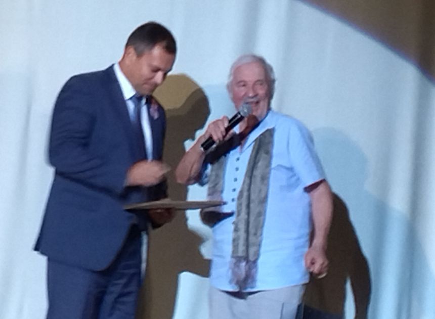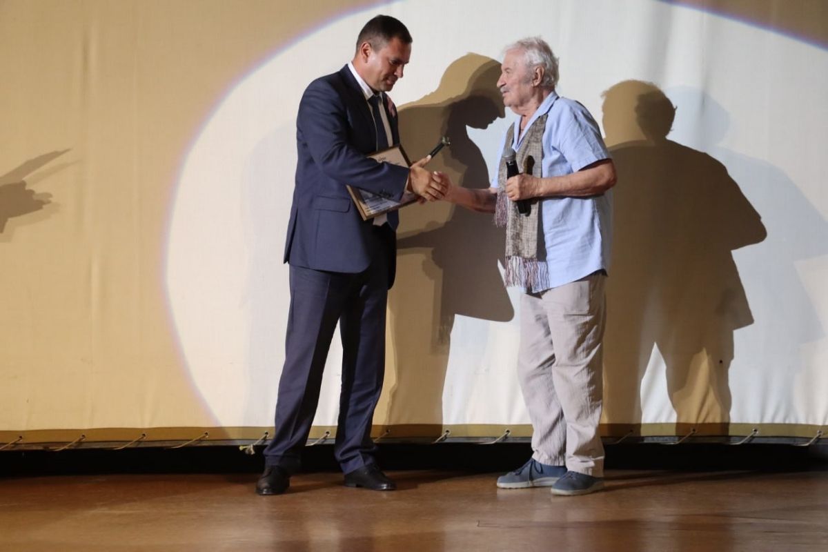 Олег Николаевич поприветствовал артистов со сцены, вручил заместителю председателя союза кинематографистов Российской Федерации - художественному руководителю программы Климу Анатольевичу Лаврентьеву памятный адрес от имени главы администрации и главы муниципального образования. Пожелал коллективу проекта вдохновения, творческих успехов и ярких премьер.