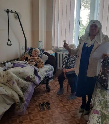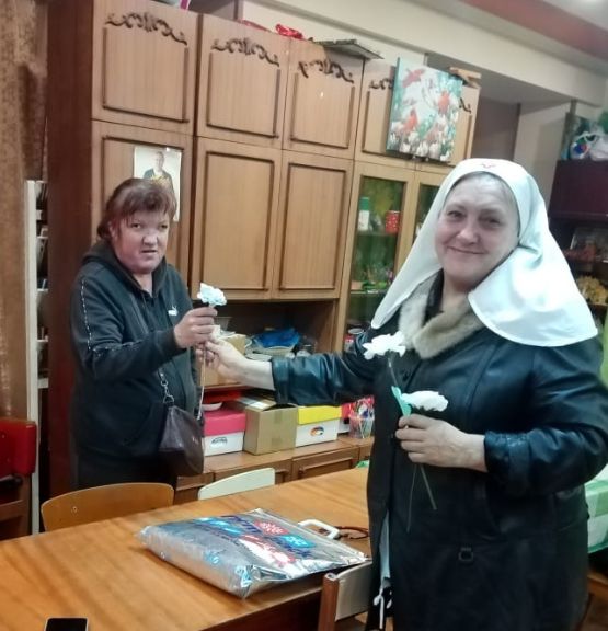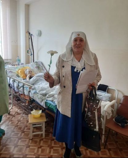 Гордиенок Т.В. – сестра милосердия, побывала в онкологической больнице Керчи. Прошла по всем палатам отделений, поздравили с праздником. Татьяна Викторовна своими беседами старалась вселить тяжело больным надежду на выздоровление. Сказала ,что чудеса бывают ,нужно верить и молится.