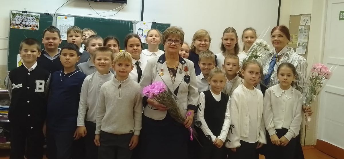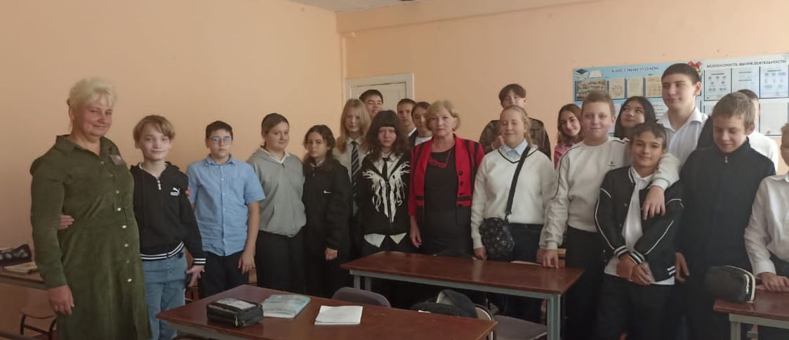 Шишкова Е.М. рассказала ребятам о работе совета ветеранов, поделилась по оказанию гуманитарной помощи участникам СВО. Показала ребятам благодарственные грамоты и медаль за « Содействие СВО».