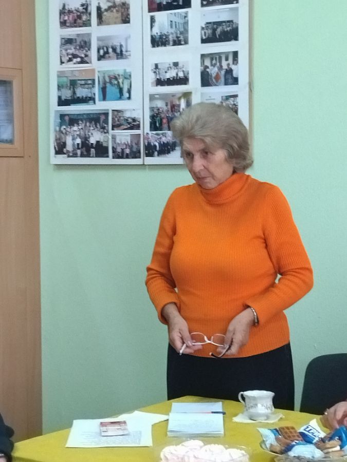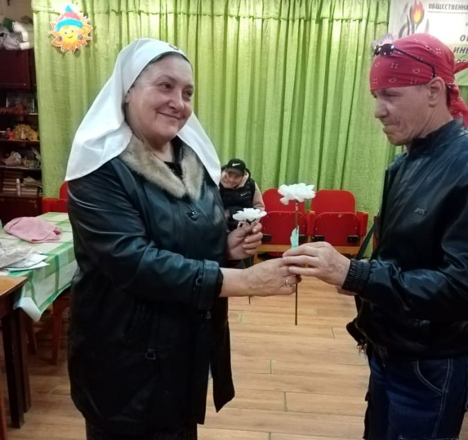 На праздничное мероприятие ,посвященное людям серебряного возраста в центр реабилитации инвалидов пригласили Гордиенок Т.В. Татьяна Викторовна всегда желанный гость. Она рассказала о значимости праздника , о милосердии ,помощи людям старшего поколения. Прочитала стихи ,которые специально сочинила для праздника. Подарила белый цветок- знак уважения и милосердия. В коллективе были приготовлены творческие номера. Праздник прошел замечательно , с вручением цветов и пожеланий здоровья и радости.