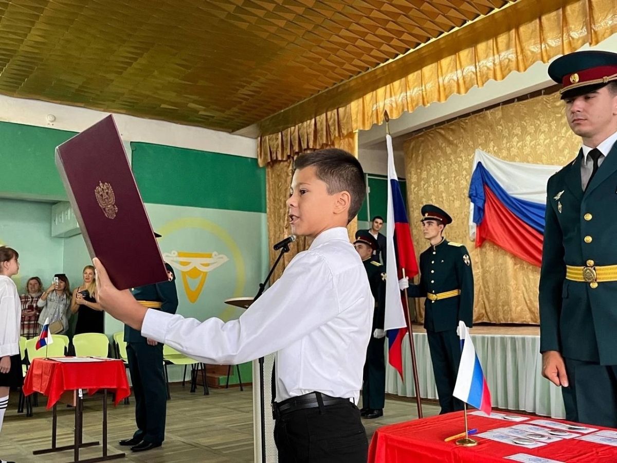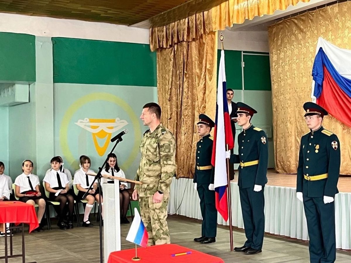 Присягу юных кадет, обучающихся 5-Д класса принимали военнослужащие войсковой части 6915 Южного округа войск национальной гвардии Российской Федерации.