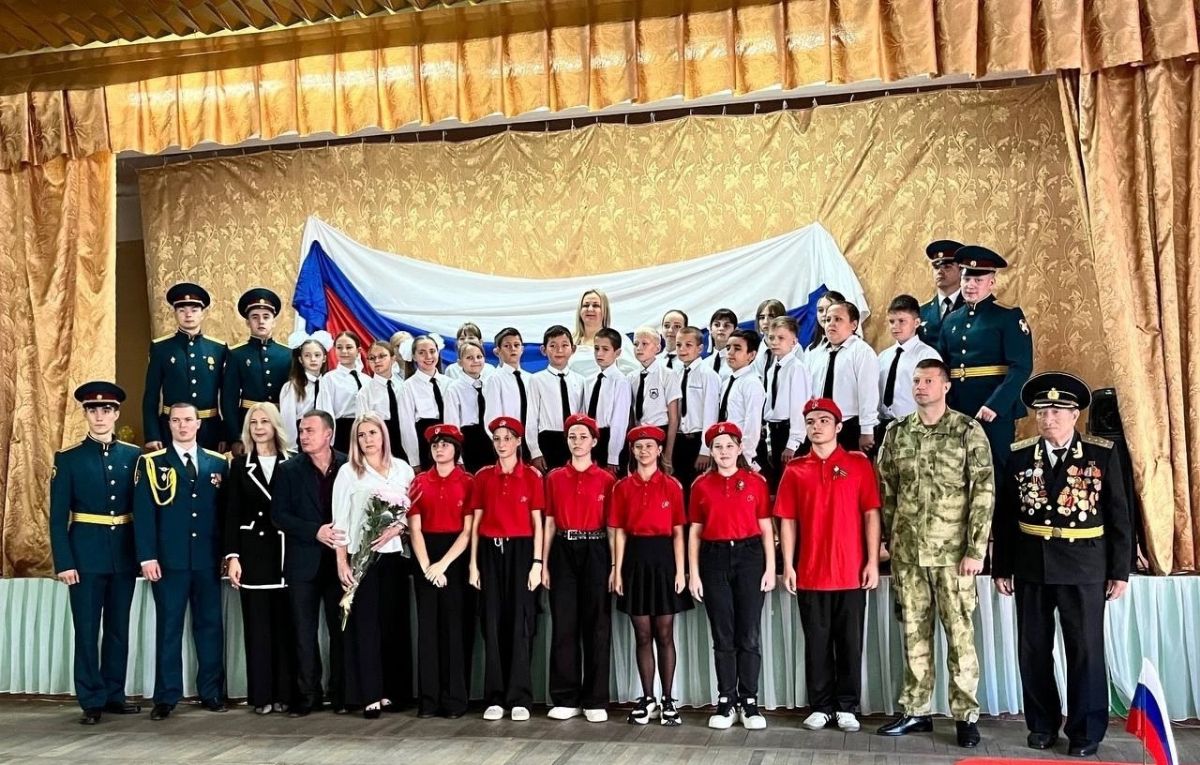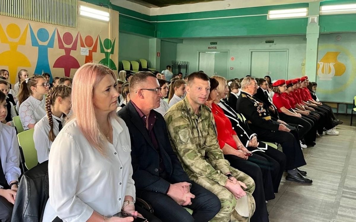 поздравления директора школы Рыбец И.В., заместителя командира в/части 6915 по военно-политической работе подполковника Пидшморга Дениса Александровича, родителей Александра Краснобаева, участника СВО, награжденного Орденом Мужества (посмертно). Приказом директора 5-Д классу присвоено имя Александра Краснобаева, участника СВО, награжденного Орденом Мужества (посмертно).