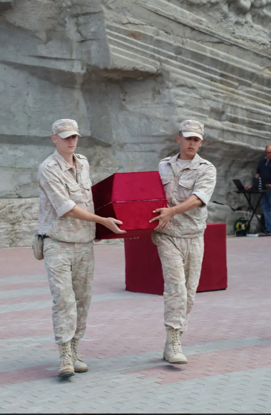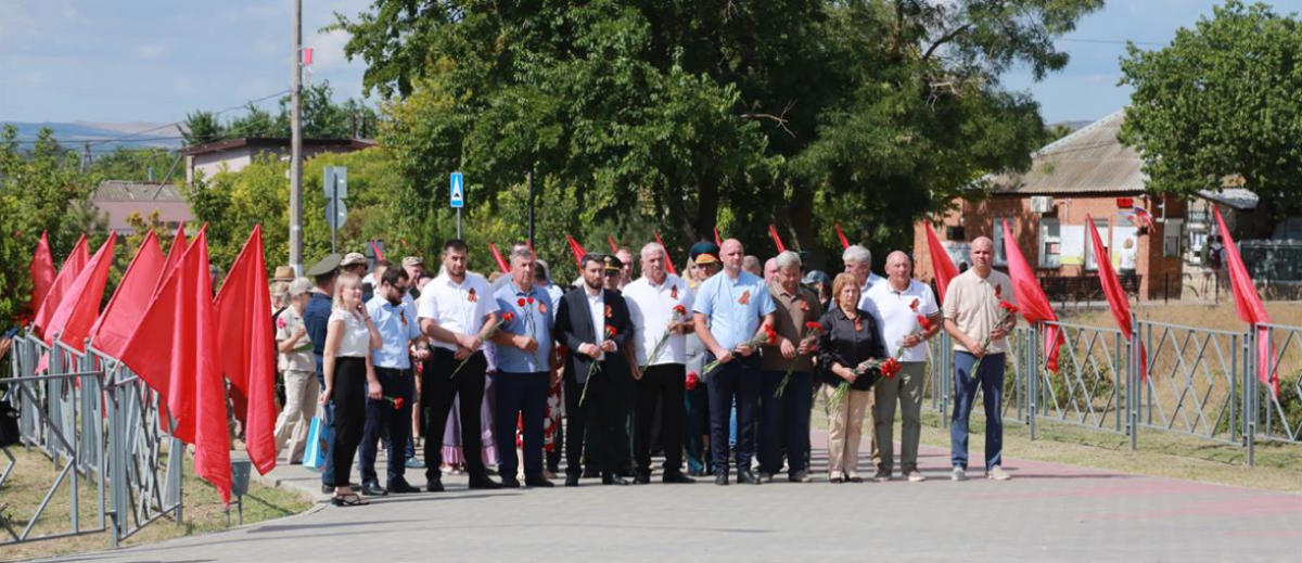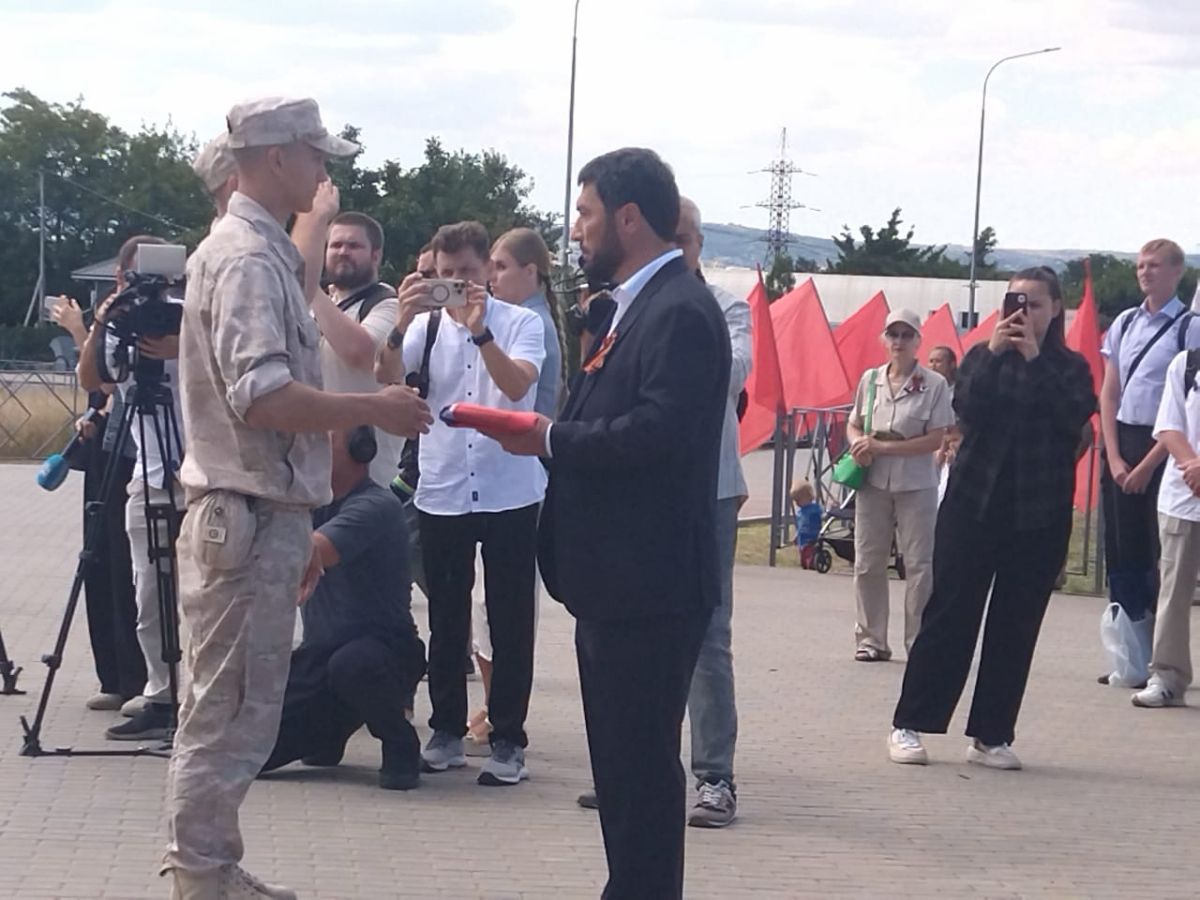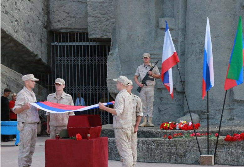 У подножия Аджимушкайских каменоломен состоялась церемония передачи останков красноармейца Исабекова Магомедкерима делегации из Дагестана, в которой принял участие актив ветеранской организации города