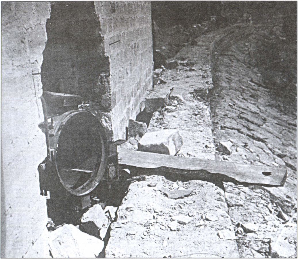 Немецкий прожектор, укрытый в проломе стены в Керчи, но разбитый нашей артиллерией (наш снимок 1944 года)